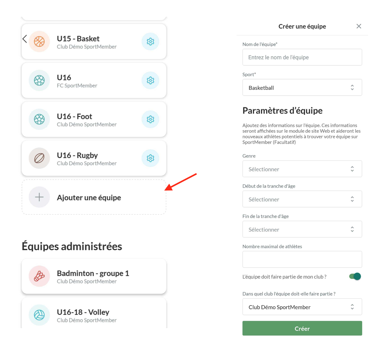 Comment créer des équipes dans mon club ?