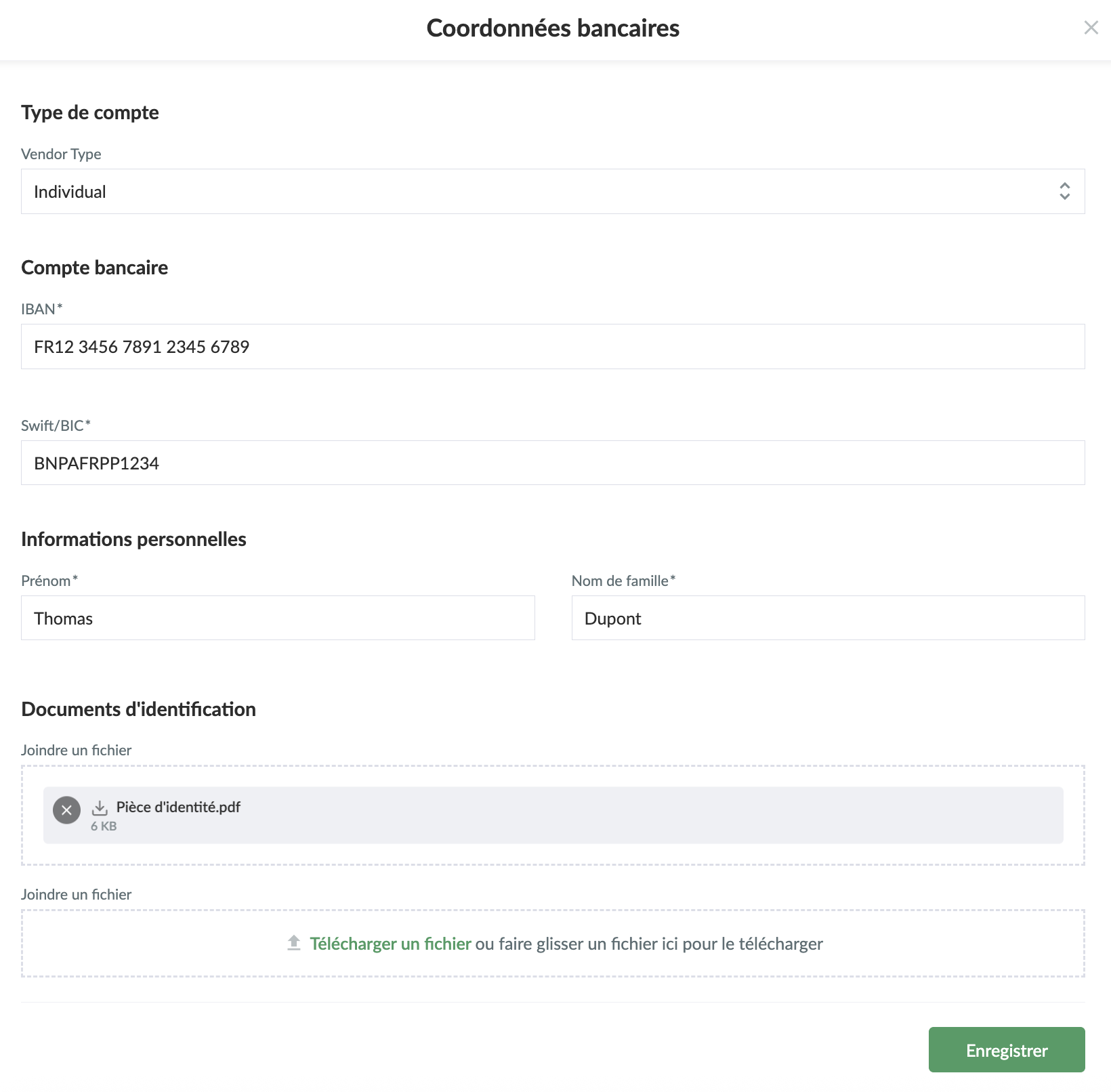 - Cliquer surAjouter un compte bancaire