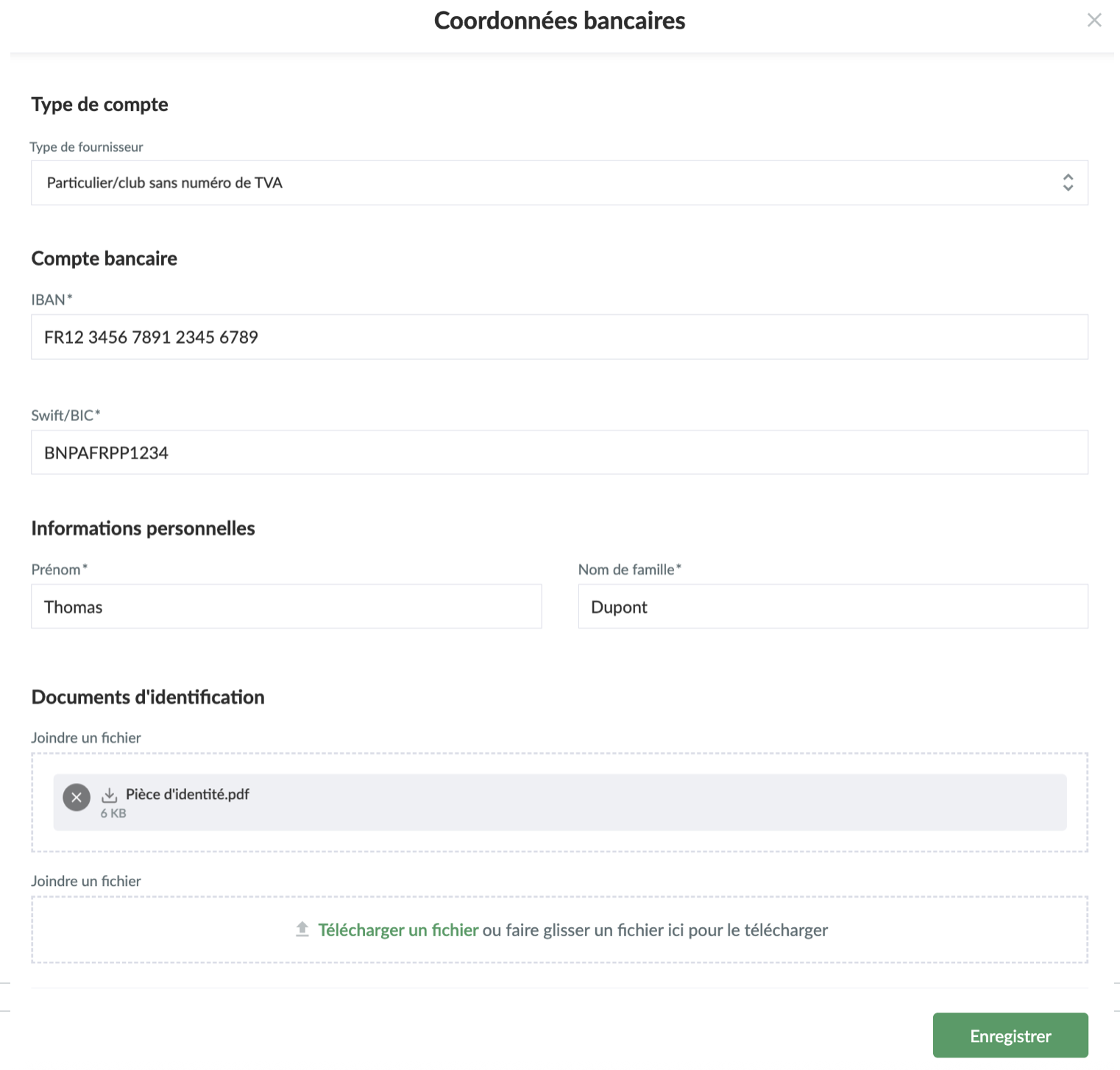 - Selon le type de votre association (Particulier ou club sans TVA, Entreprise ou Organisme à but nom lucratif) différentes informations additionnelles vous seront demandées.