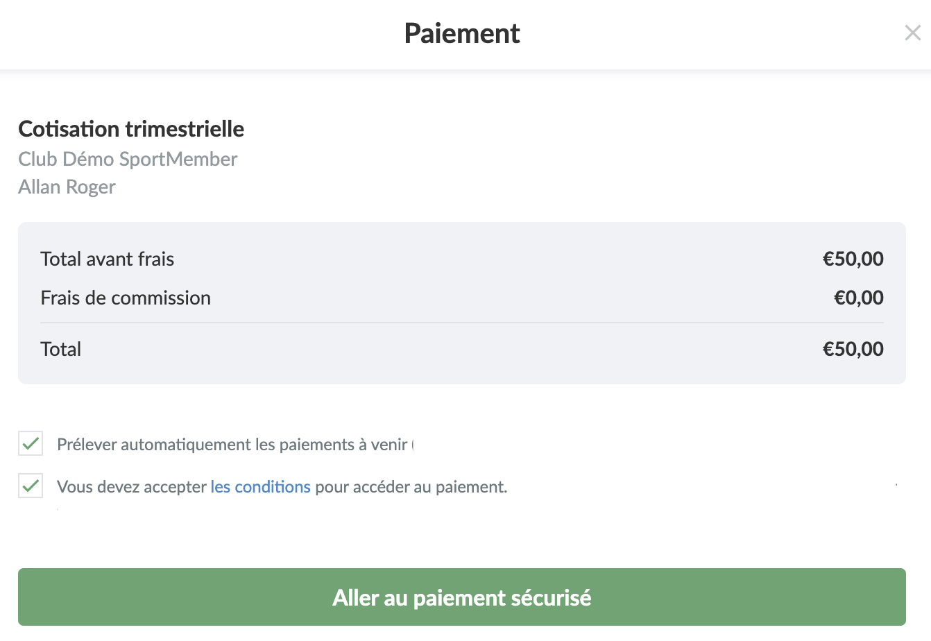 Si vous avez un profil parent, et donc un accès aux profils de votre/vos enfant(s), vous pouvez payer la cotisation de votre enfant sur SportMember via l'application.